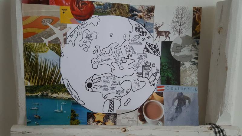 Voor de volgende opdracht heb ik een beeldentekening gemaakt die bij de kunstbiografie hoorde. Deze collage geeft mij weer in beelden. Zoals je kan zien hou ik veel van reizen. Ik hou zoveel van hele warme landen (vooral in de zomer). en van koudere landen waar je kan schaatsen en skiën ( vooral in de winter). Ook kun je mijn sport ontdekken en mijn afkomst, Friese afkomst en ik doe aan langebaanschaatsen. Ik houd erg veel knusheid dit is te zien aan het kopje thee en chocolademelk.